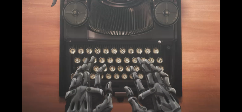 바이올렛이 편지를 대필하는 장면 (의수가 돋보인다)